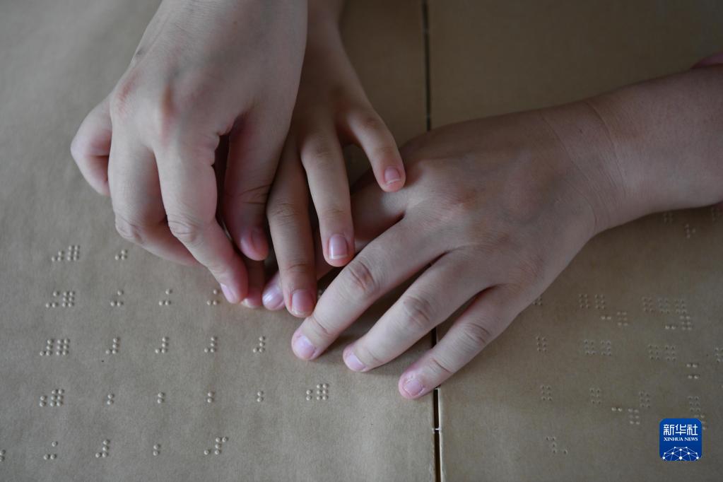 9月7日,張晨在安慶市特殊教育學(xué)校教學(xué)生盲文。