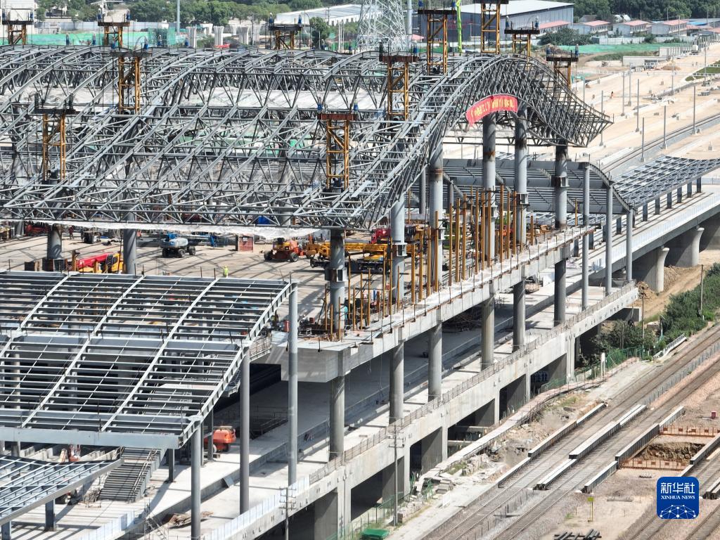 9月9日拍攝的建設中的江陰站站房(無(wú)人機照片)。