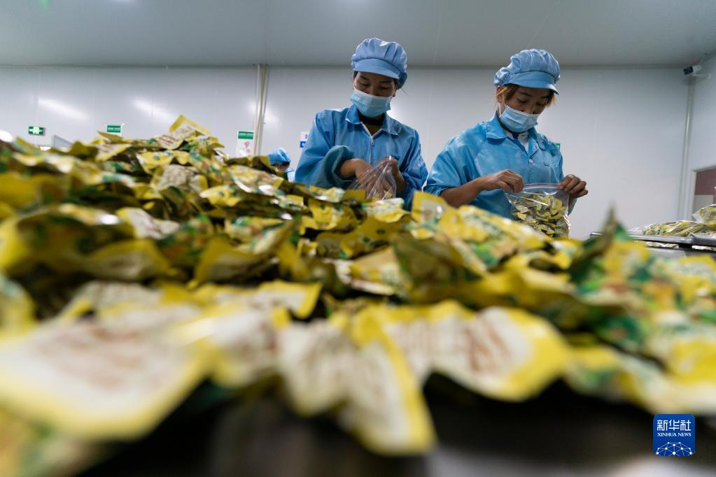 9月9日,工作人員在祿豐市中村鄉一家板栗加工企業(yè)包裝產(chǎn)品。