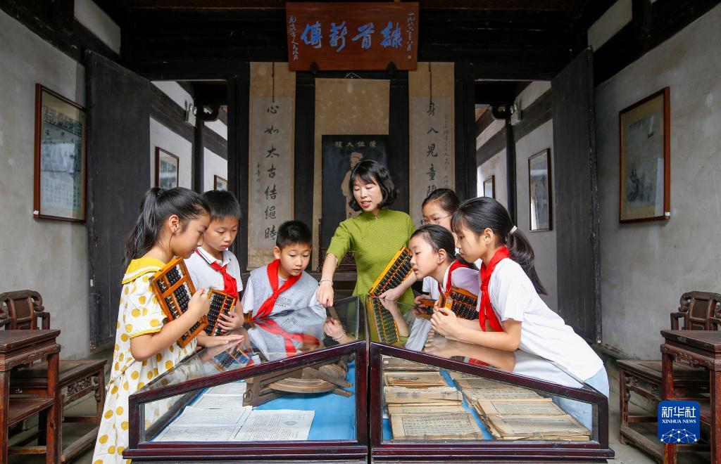 9月7日,在安徽省黃山市程大位故居,汪素秋為孩子們介紹程大位所著(zhù)典籍。