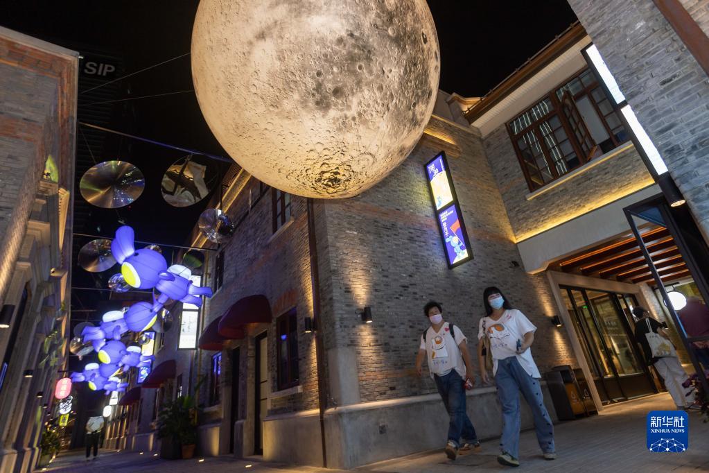 當日,位于上海市虹口區的“今潮8弄”舉行中秋燈會(huì ),形態(tài)各異、新潮萌趣的花燈遍布在縱橫交錯的海派弄堂和百年老建筑中。