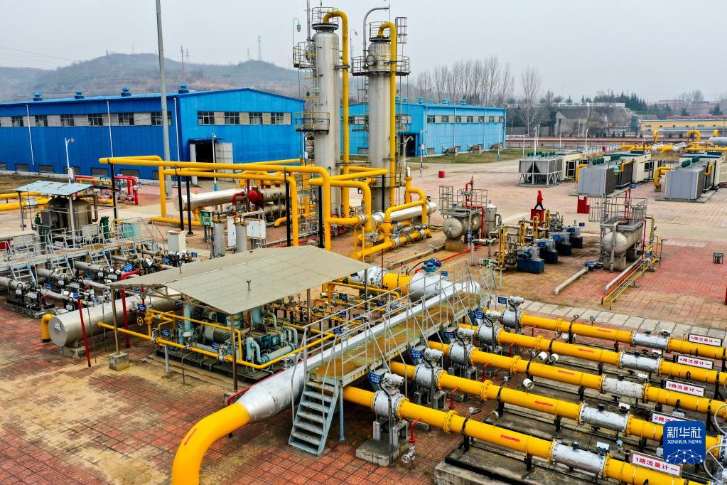 這是2020年12月8日拍攝的位于山西省晉城市沁水縣的山西藍焰煤層氣集團有限責任公司李莊首站(無(wú)人機照片)。新華社記者 曹陽(yáng) 攝