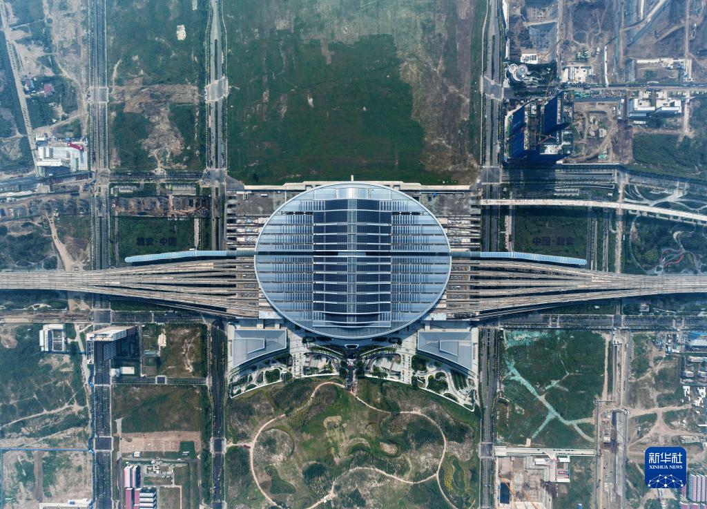 京雄城際鐵路雄安站(9月9日攝,無(wú)人機照片)。
