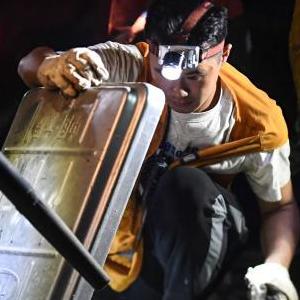 工人在柳州太陽(yáng)村站進(jìn)行夜間換岔施工(9月9日攝)。