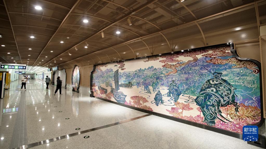 南起新宮站北至牡丹園站的北京地鐵19號線(xiàn)一期全線(xiàn)投入運營(yíng)一個(gè)多月,地鐵站內的美術(shù)和建筑藝術(shù)成為一大亮點(diǎn)。北京地鐵19號線(xiàn)站臺環(huán)境設計以“薈萃京華”為主題,各式各樣的壁畫(huà)、燈飾等展示了北京豐富的歷史和文化積淀。