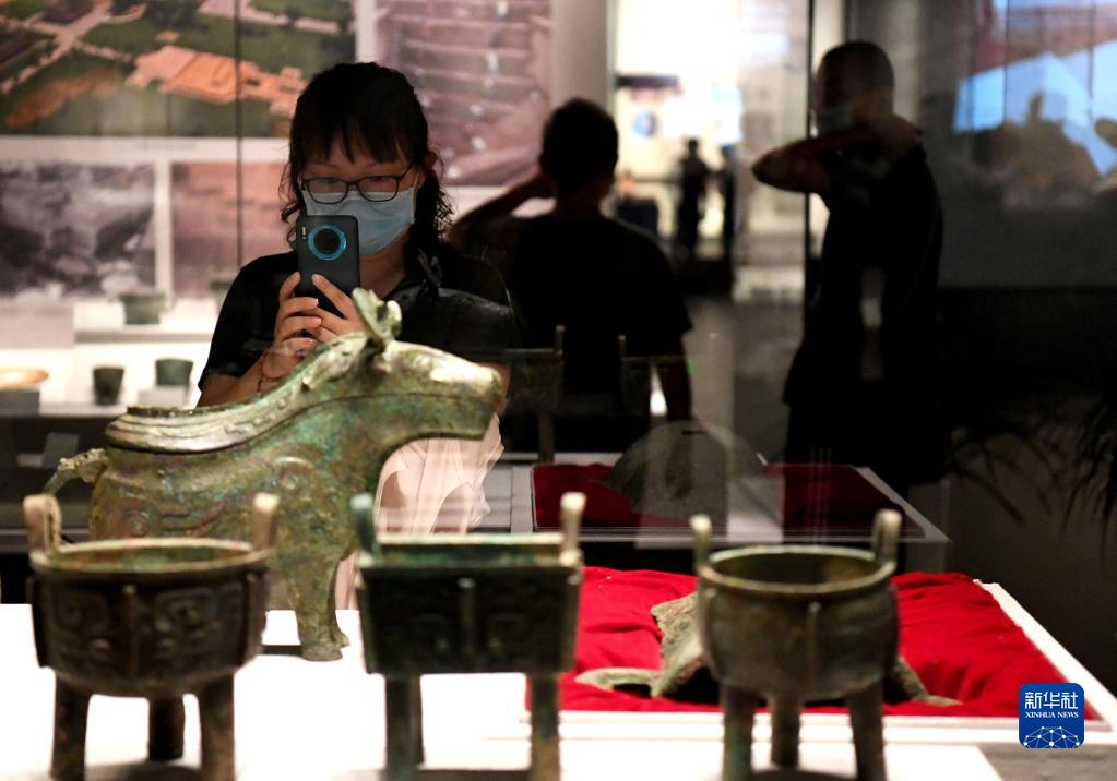 9月10日,在鄭州博物館文翰街館,市民參觀(guān)“繁星盈天——中國百年百大考古發(fā)現展”。