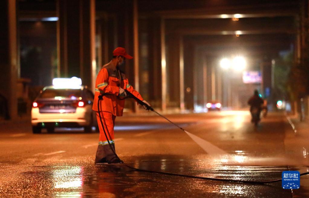 9月10日,河北石家莊市新華區環(huán)衛工人在進(jìn)行晨掃清理工作。