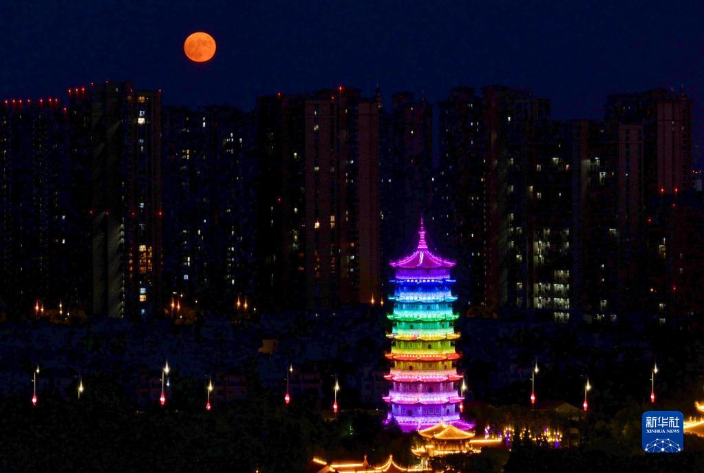 9月10日在江蘇省昆山市拍攝的圓月(無(wú)人機照片)。