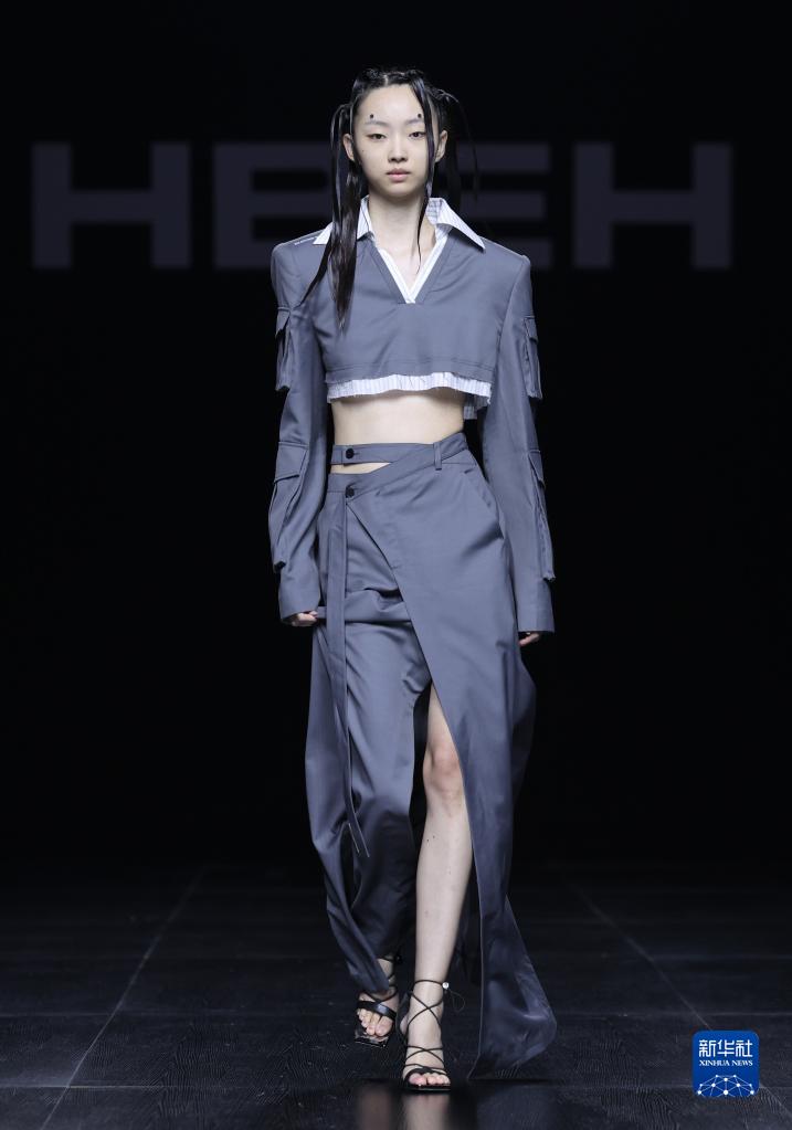 9月10日,模特在展示時(shí)裝設計師惠文龍設計的時(shí)裝。