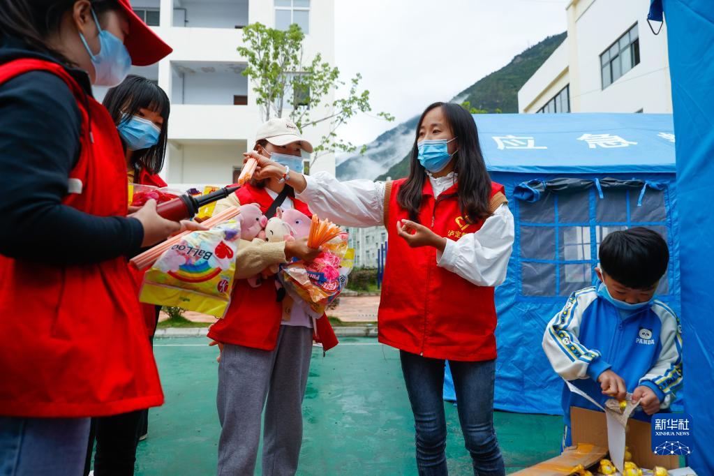 32歲的羅蓮是四川省甘孜州瀘定縣冷磧鎮幼兒園的一名老師?!?·5”瀘定地震發(fā)生后,她于第二天自發(fā)來(lái)到瀘定縣第二中學(xué)校災后臨時(shí)安置點(diǎn)做志愿者,為安置在這里的數百名來(lái)自重災區得妥鎮的群眾服務(wù)。這些易地安置的群眾包括約50名不同年齡段的孩子,羅蓮與其他幾名同樣是老師的志愿者一起,利用三頂安置帳篷開(kāi)設了“帳篷課堂”,帶領(lǐng)孩子們畫(huà)畫(huà)、閱讀、做游戲、做手工等,細心照料、陪伴著(zhù)這些經(jīng)歷了地震傷痛的孩子。