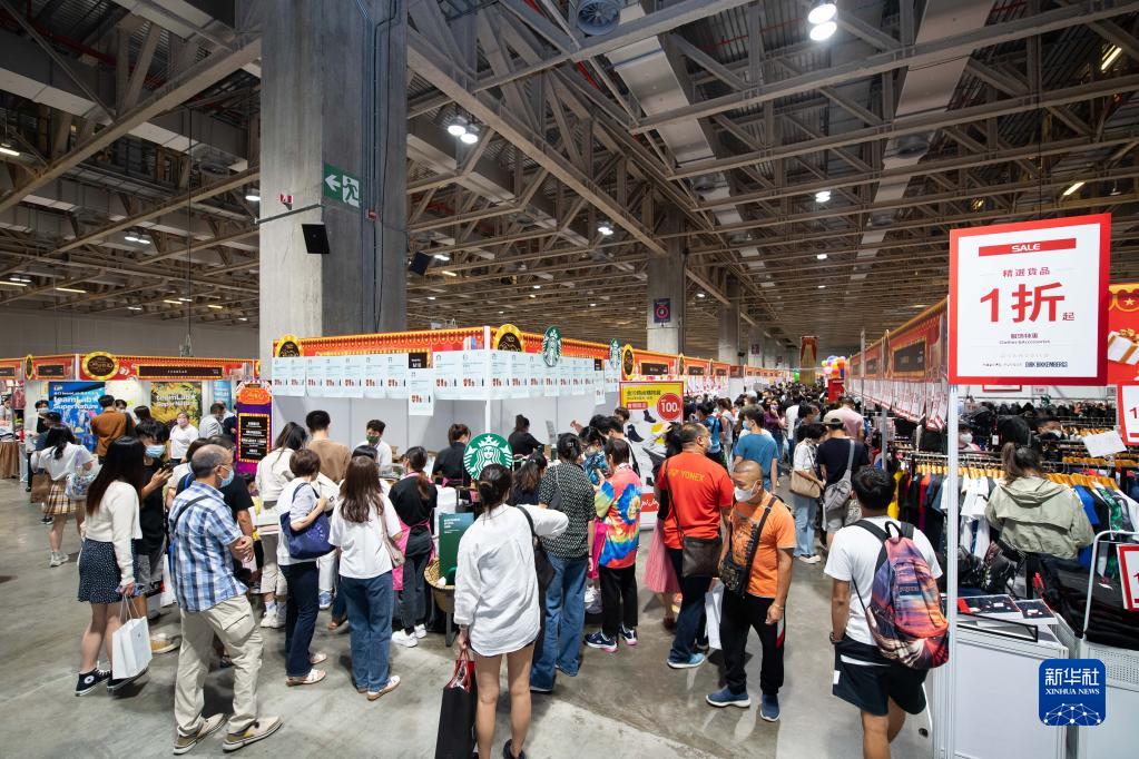 9月10日,人們在澳門(mén)年度大規模消費折扣展上選購商品。新華社記者 張金加 攝