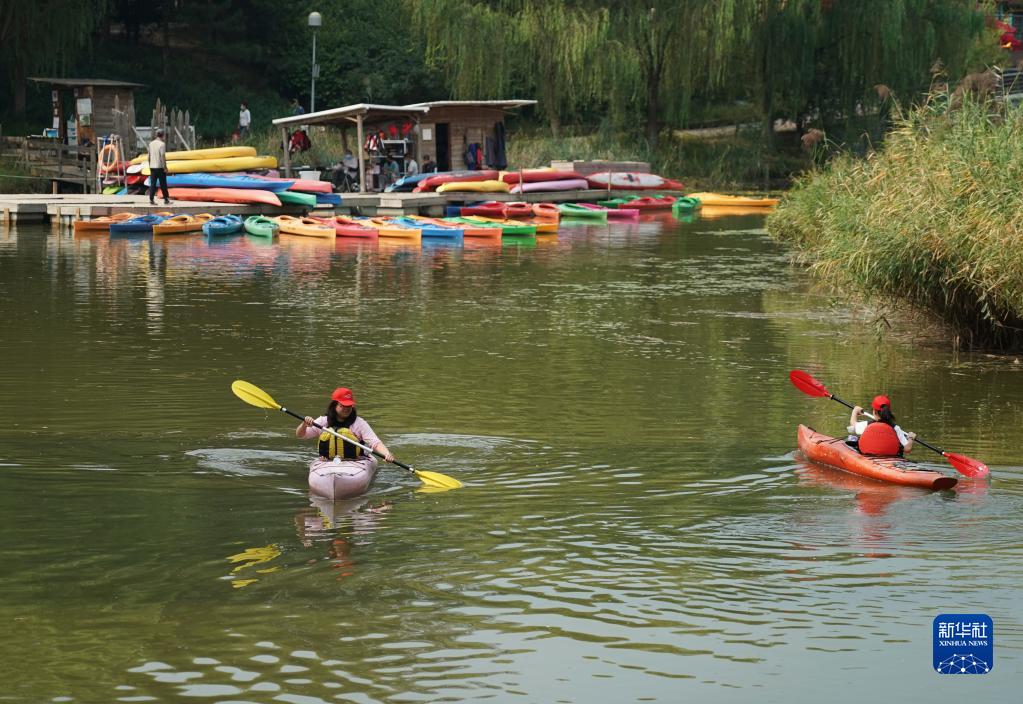 9月11日,市民在北京奧林匹克森林公園南園劃船。新華社記者 任超 攝