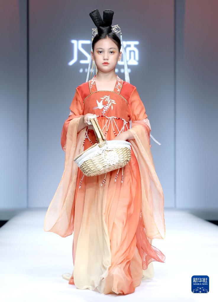 9月11日,模特在在北京中國國際時(shí)裝周(2023春夏系列)舉行的“JS·蔣碩”童裝發(fā)布會(huì )上展示設計師蔣碩設計的童裝。