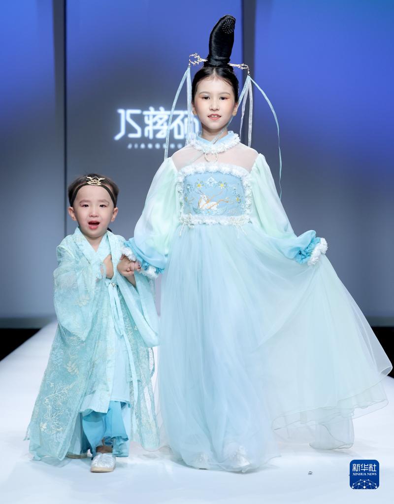 9月11日,模特在在北京中國國際時(shí)裝周(2023春夏系列)舉行的“JS·蔣碩”童裝發(fā)布會(huì )上展示設計師蔣碩設計的童裝。