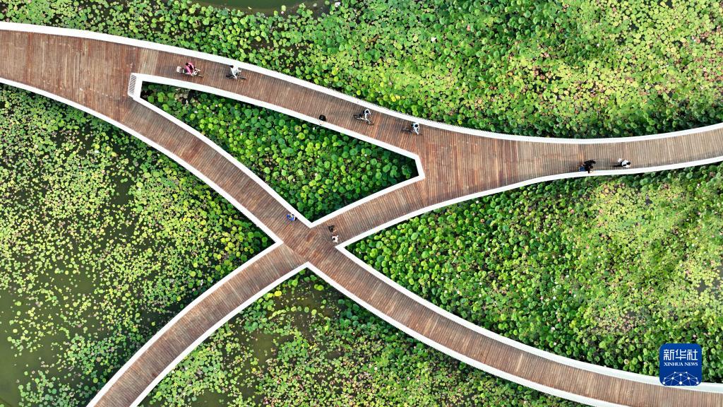 9月11日,市民在河北省石家莊市太平河城市片區游覽休閑。