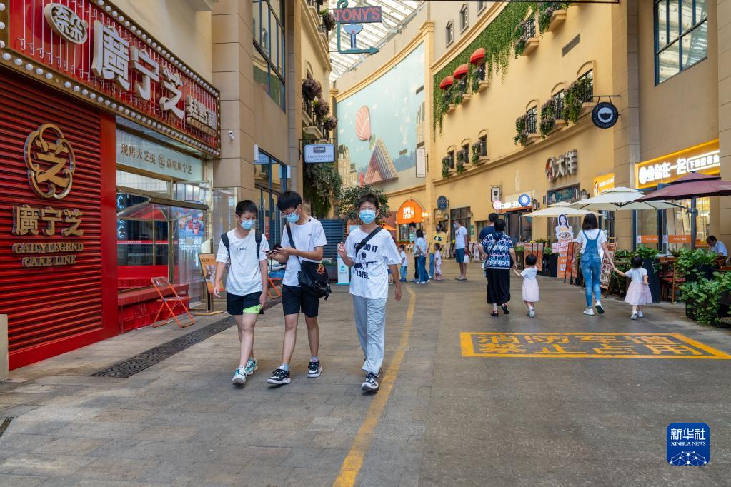 9月11日,游客在江蘇省南京市江北新區一條步行街逛街。新華社發(fā)(杜懿 攝)