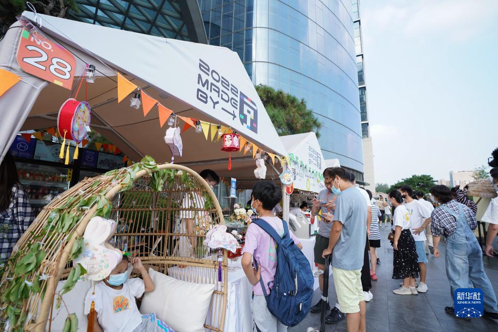 9月11日,人們在北京朝陽(yáng)區亮馬河畔的“中秋市集”上購物休閑。新華社記者 陳鐘昊 攝