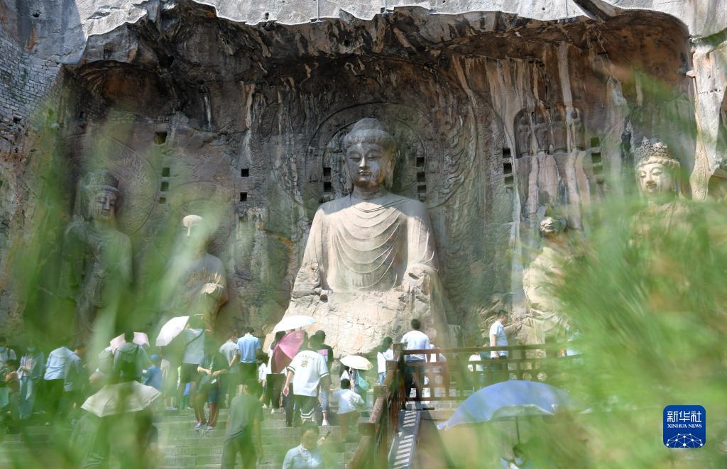 9月11日,游客在河南省洛陽(yáng)市龍門(mén)石窟景區參觀(guān)游覽。新華社發(fā)(張怡熙 攝)