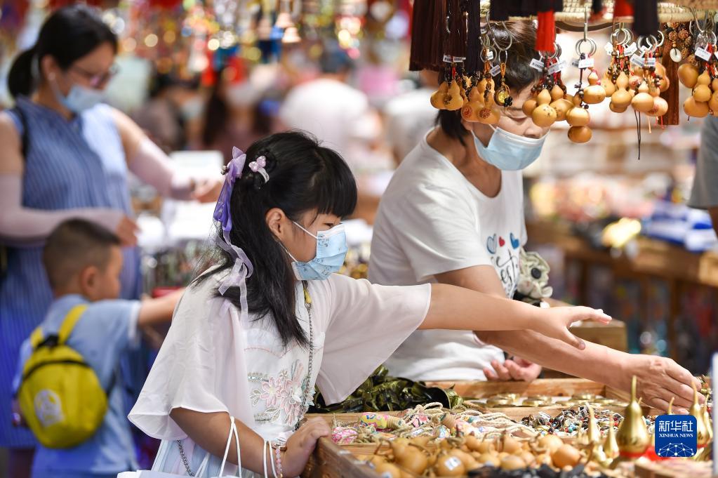9月11日,小朋友在江蘇省南京市夫子廟景區選購旅游紀念品。新華社發(fā)(方東旭 攝)