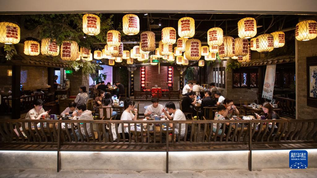 9月11日,顧客在江蘇省南京市新街口的一家餐廳內用餐。新華社發(fā)(蘇陽(yáng) 攝)
