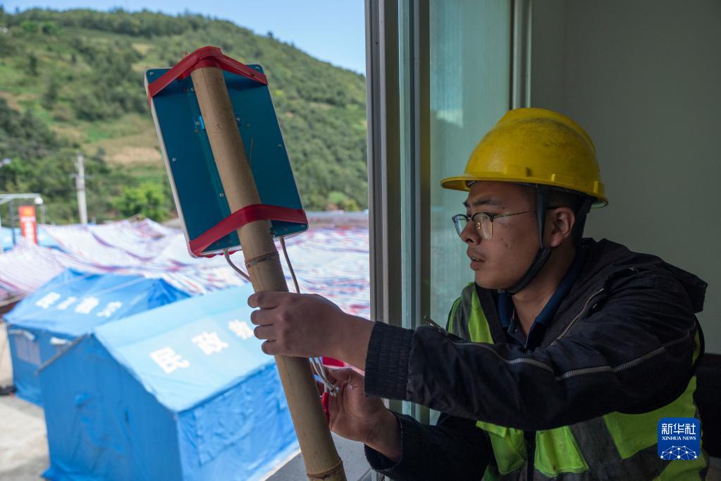 9月10日,在四川省石棉縣幸福村,中國移動(dòng)雅安分公司工作人員在調整基站天線(xiàn)。