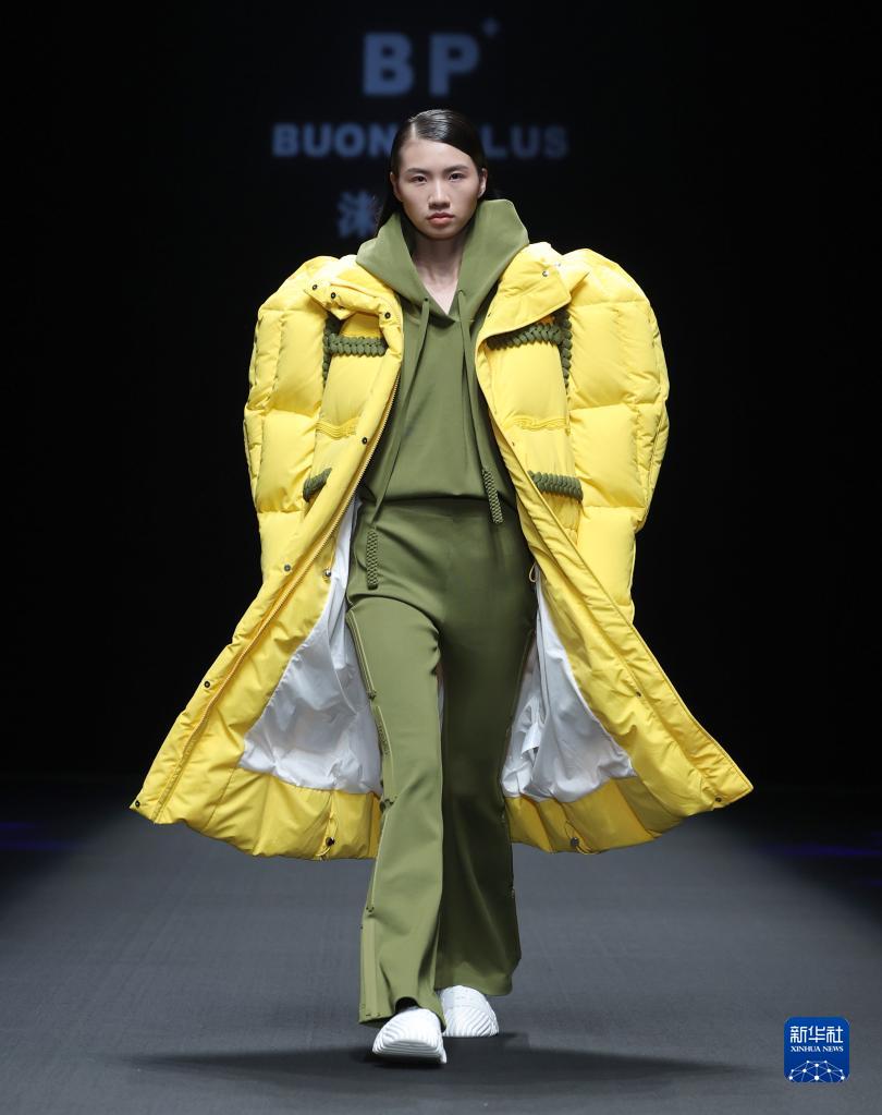 9月11日,模特在北京中國國際時(shí)裝周(2023春夏系列)舉行的“BUONO PLUS·姜佳”時(shí)裝發(fā)布會(huì )上展示設計師姜佳設計的羽絨系列服裝。
