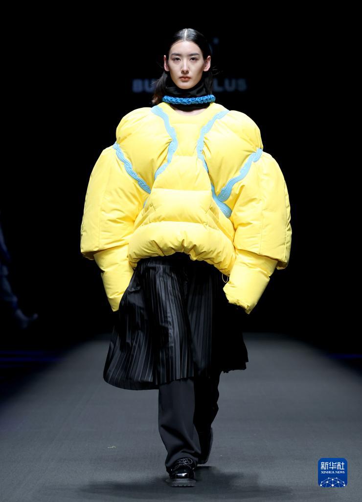 9月11日,模特在北京中國國際時(shí)裝周(2023春夏系列)舉行的“BUONO PLUS·姜佳”時(shí)裝發(fā)布會(huì )上展示設計師姜佳設計的羽絨系列服裝。
