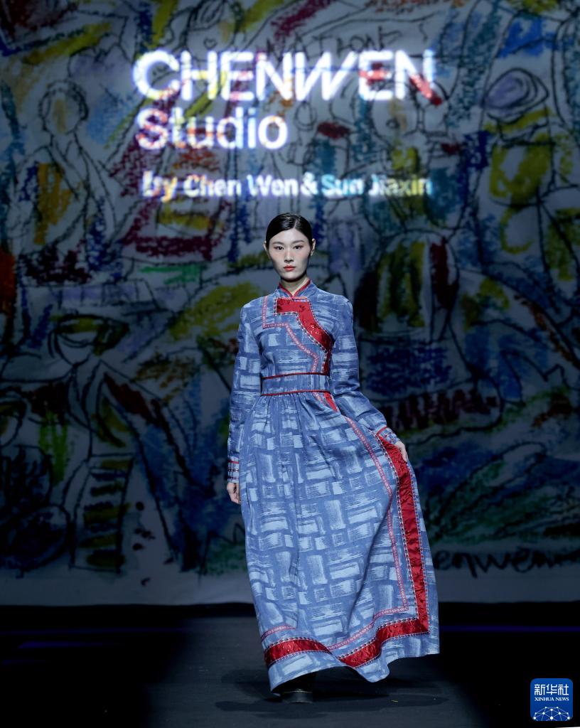 9月12日,模特在北京中國國際時(shí)裝周(2023春夏系列)舉行的“CHENWEN Studio·陳聞”牛仔親子裝發(fā)布會(huì )上展示時(shí)裝設計師陳聞設計的牛仔親子裝。