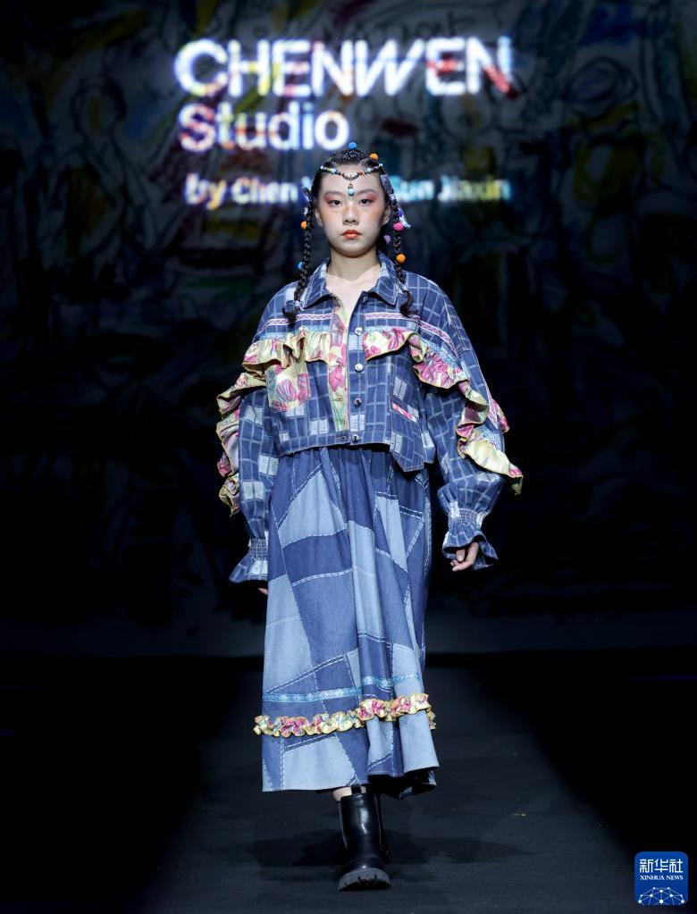 9月12日,模特在北京中國國際時(shí)裝周(2023春夏系列)舉行的“CHENWEN Studio·陳聞”牛仔親子裝發(fā)布會(huì )上展示時(shí)裝設計師陳聞設計的牛仔親子裝。
