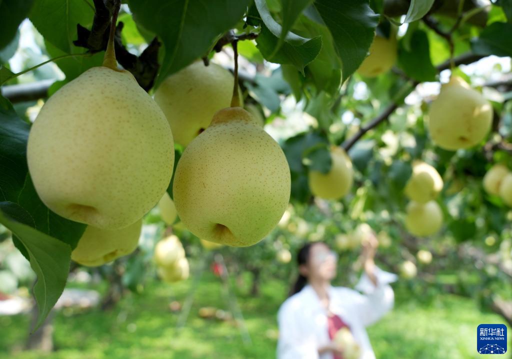 9月12日,河北省晉州市周家莊鄉果農在果園采摘鴨梨。