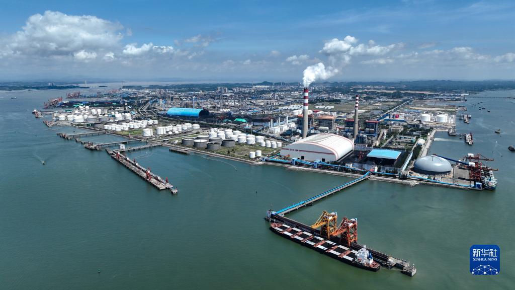 這是廣西欽州港能源運輸碼頭(2022年8月28日攝,無(wú)人機照片)。
