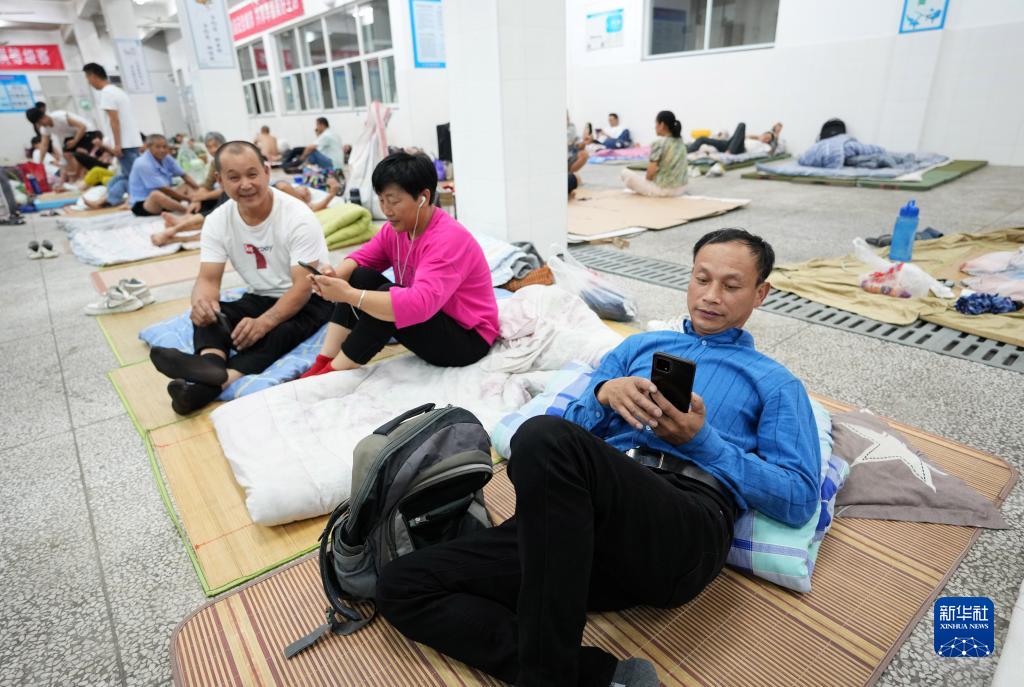 9月13日,浙江省寧波市象山縣丹城第二中學(xué),來(lái)自附近建筑工地的務(wù)工人員被安置在學(xué)校餐廳內休息。