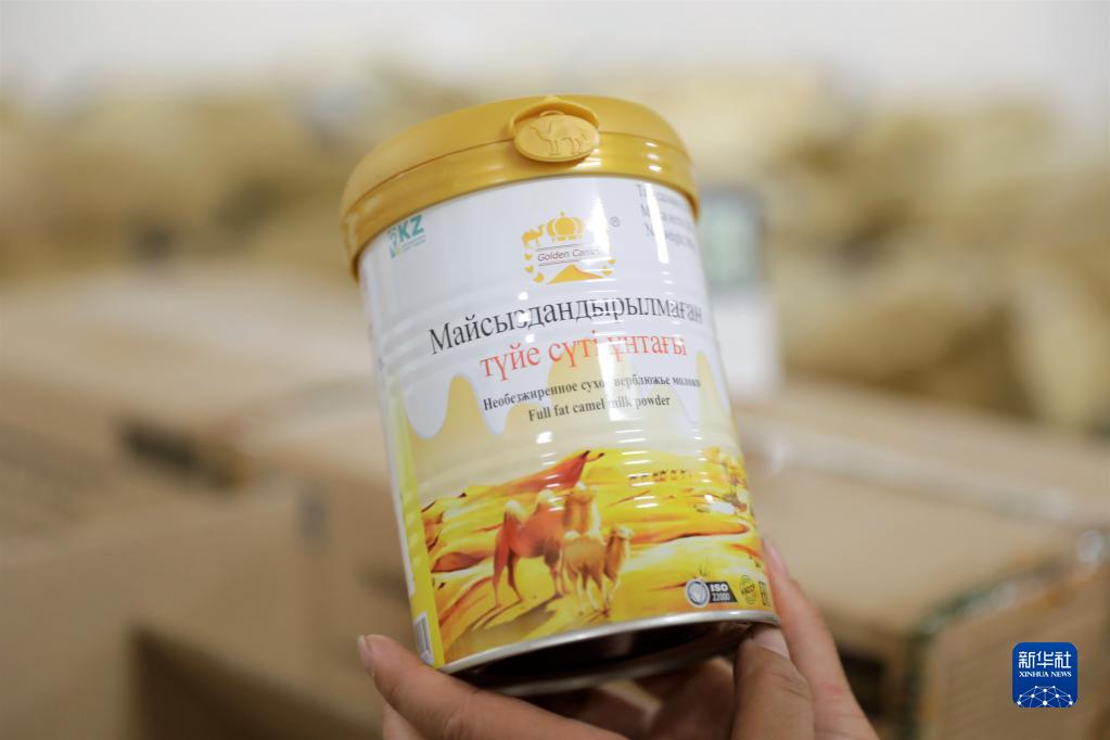 這是8月13日在位于哈薩克斯坦南部城市圖爾克斯坦的哈薩克斯坦金駱駝集團有限公司的駝乳粉加工廠(chǎng)拍攝的全脂駝乳粉產(chǎn)品。新華社發(fā)(奧斯帕諾夫 攝)