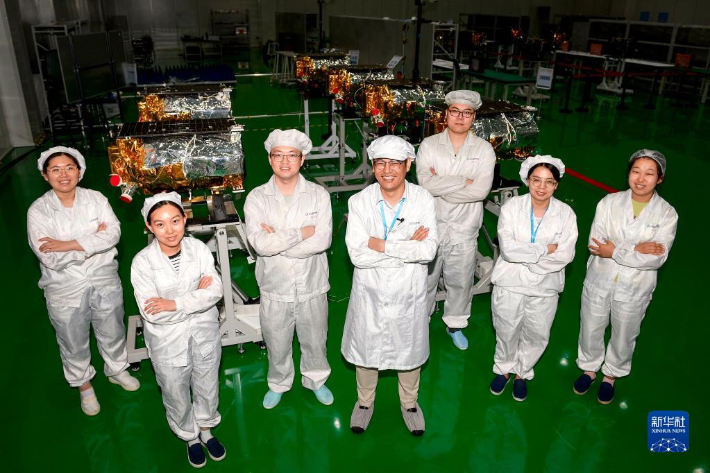 這是“吉林一號”高分03衛星部分研發(fā)調試人員(2022年8月3日攝)。新華社記者 許暢 攝