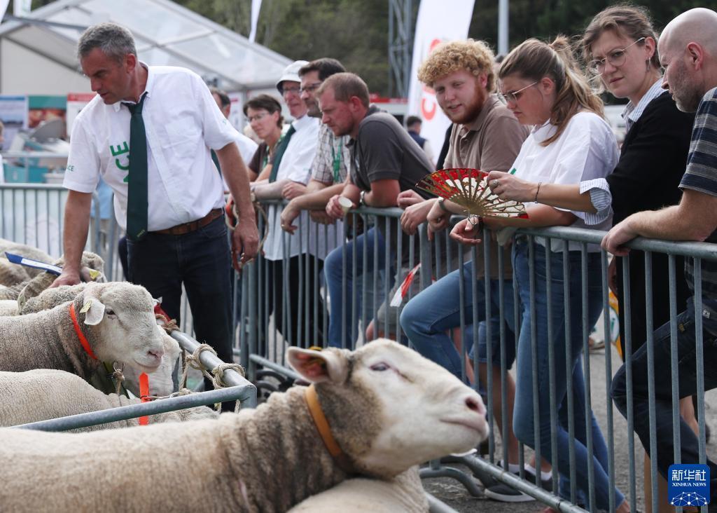 9月13日,人們在法國雷恩畜牧業(yè)展覽會(huì )上參觀(guān)展出的綿羊。