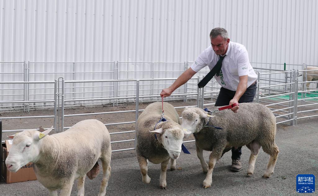 這是9月13日在法國雷恩畜牧業(yè)展覽會(huì )上拍攝的展出的綿羊。