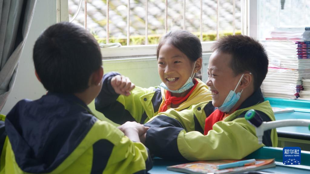 9月14日,學(xué)生在瀘定縣得妥鎮中心小學(xué)做游戲。