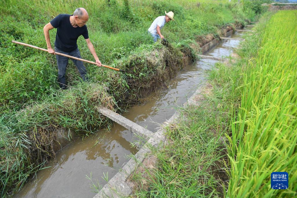 9月15日,在湘潭市雨湖區姜畬鎮聯(lián)映村,村民在疏浚灌渠。