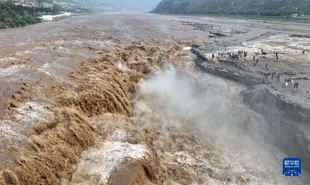 近日,秦晉交界的黃河壺口瀑布水量大增,形成綿延數百米的壯美瀑布群。