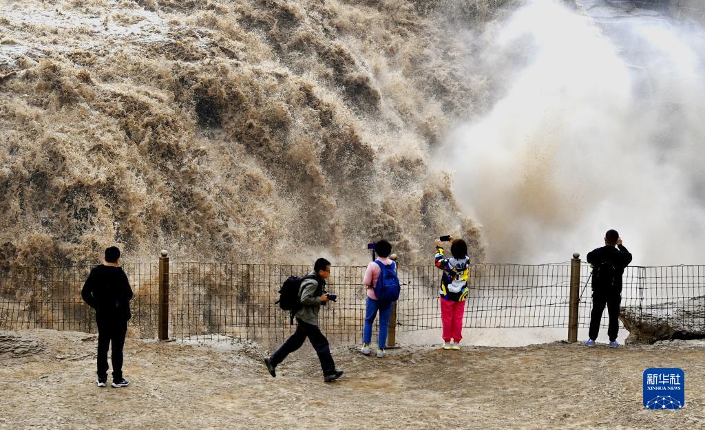 9月15日,游人在黃河壺口瀑布群前拍照、游覽。