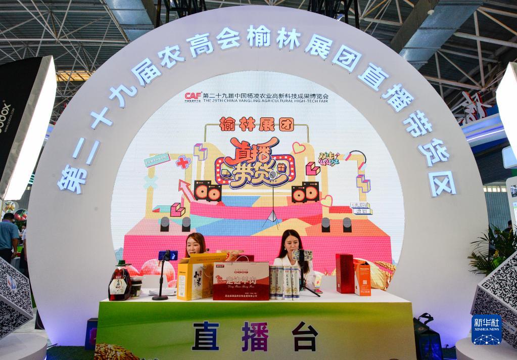 9月15日,在農業(yè)科技示范推廣應用展館榆林展區,主播在介紹特色農產(chǎn)品。