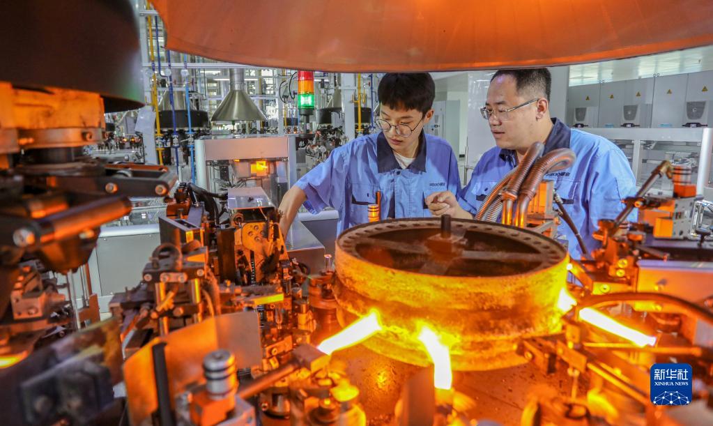 9月15日,威高集團預灌封生產(chǎn)車(chē)間主任蘭明昌(右)指導“訂單班”學(xué)員王常發(fā)檢驗生產(chǎn)設備。