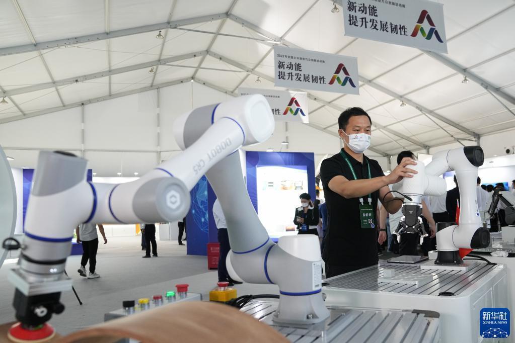 9月15日,在2022年全國大眾創(chuàng )業(yè)萬(wàn)眾創(chuàng )新活動(dòng)周合肥主會(huì )場(chǎng)的主題展區,來(lái)自深圳的越疆科技有限公司參展商展示其公司研發(fā)的智能協(xié)作機械臂。