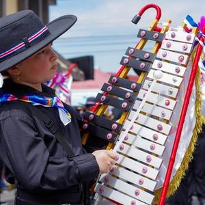 9月15日,在哥斯達黎加埃雷迪亞,民眾走上街頭歡慶該國獨立201周年。