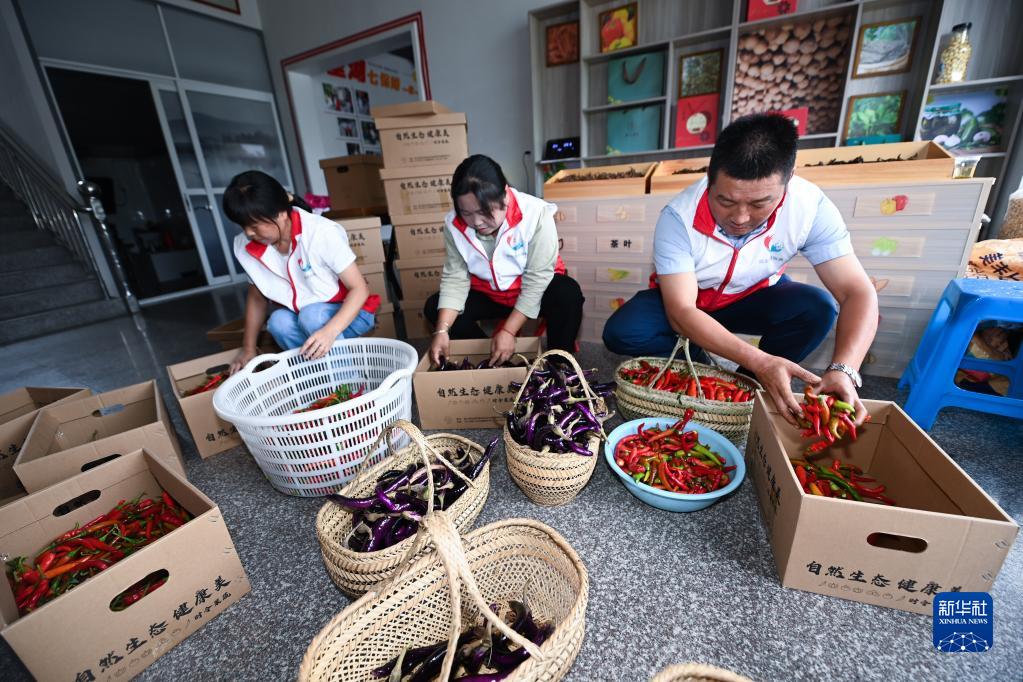 9月16日,杭州市臨安區龍崗鎮望湖村黨員志愿者在打包從“共富菜園”采摘的蔬菜,準備銷(xiāo)售給結對的企業(yè)。