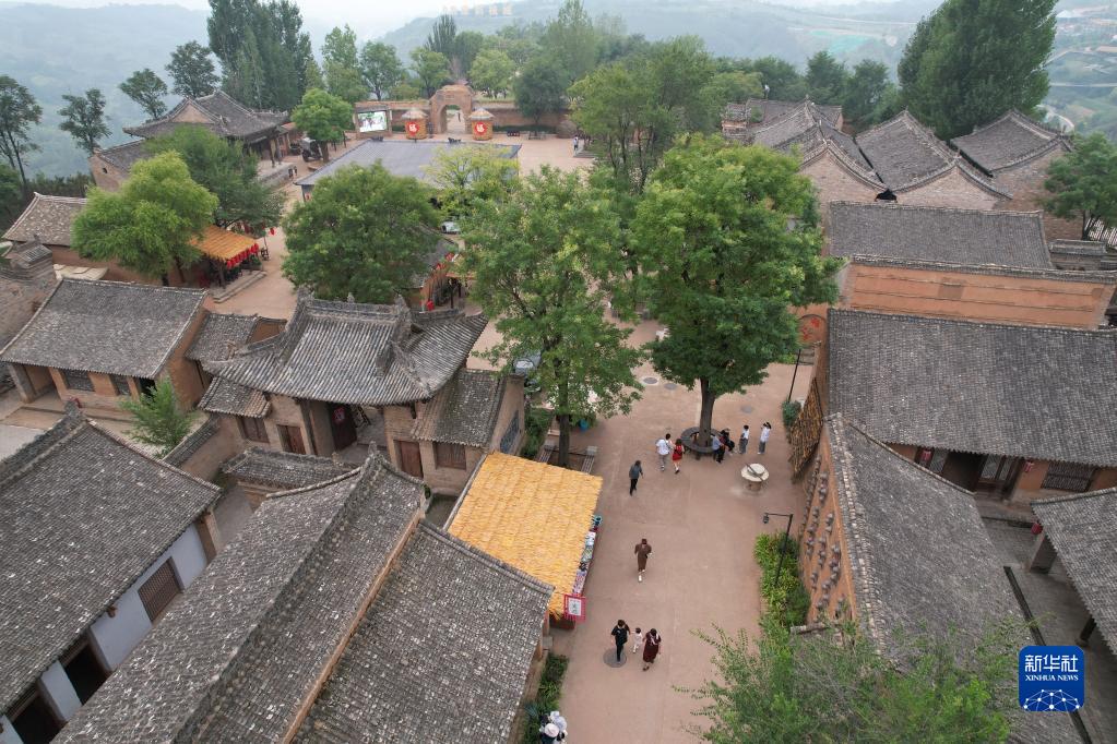 9月14日,游客在白鹿原影視城內游覽(無(wú)人機照片)。
