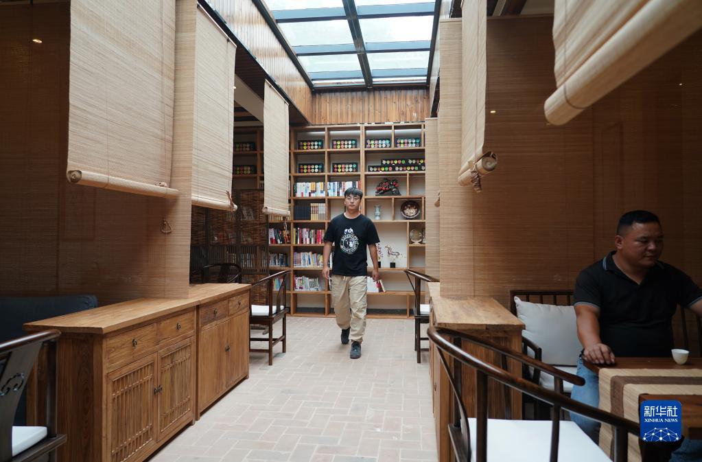 西安市藍田縣小寨鎮董嶺村一家改造后的民宿茶室(9月14日攝)。