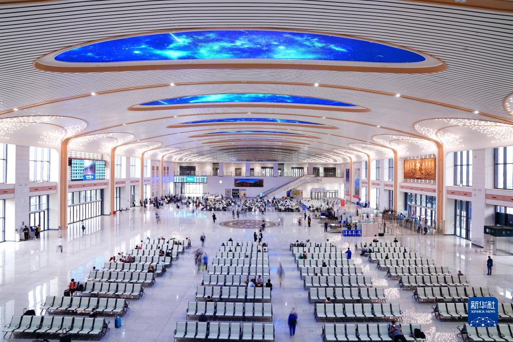 9月16日,旅客在新建淄博站南站房乘車(chē)出行。