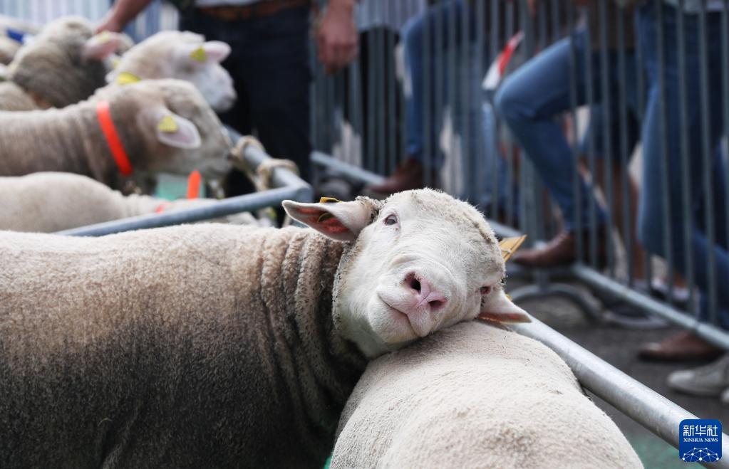 這是9月13日在法國雷恩畜牧業(yè)展覽會(huì )上拍攝的展出的綿羊。