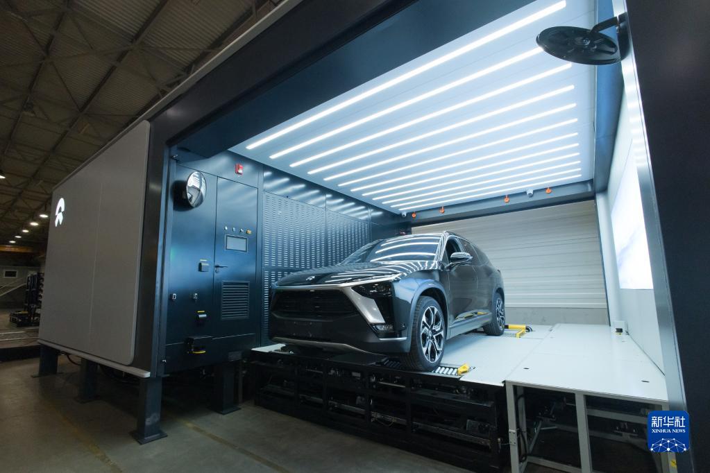 9月16日,在匈牙利比奧托爾巴吉,一輛蔚來(lái)汽車(chē)停放在換電站中。